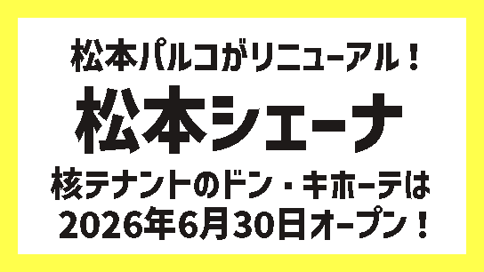 長野県松本市 旧松本パルコの建物を再利用し、株式会社やまきの商業施設「松本シェーナ」が2026年6月30日(火)に開業!