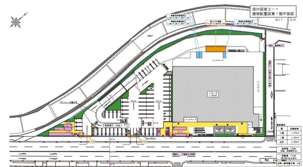 ハローズを中心として非物販店(サービス店舗や飲食店舗など)が2店舗出店予定です。