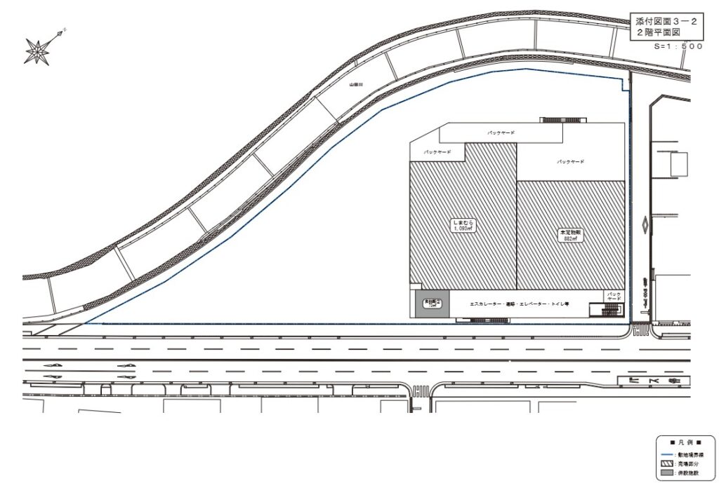 2階はファッションセンターしまむら、そして物販店舗がもう1店舗入るようです。全国のハローズの事例では100円ショップが入ることが多いです。