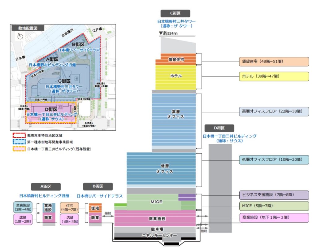 東京ミッドタウン日本橋(旧称:日本橋一丁目中地区市街地再開発事業)の概要は以下の通りです。