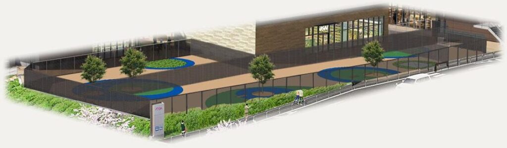 屋外広場「noNIWA」には地域最大級のドッグランやインクルーシブ遊具も整備され、家族やペットと一日中楽しめる空間になります。