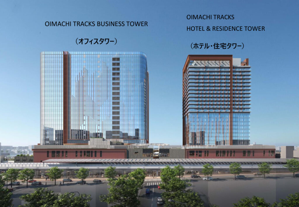 大きな広場を併設し、大型再開発ビルが大井町駅側に2棟建設される計画です。