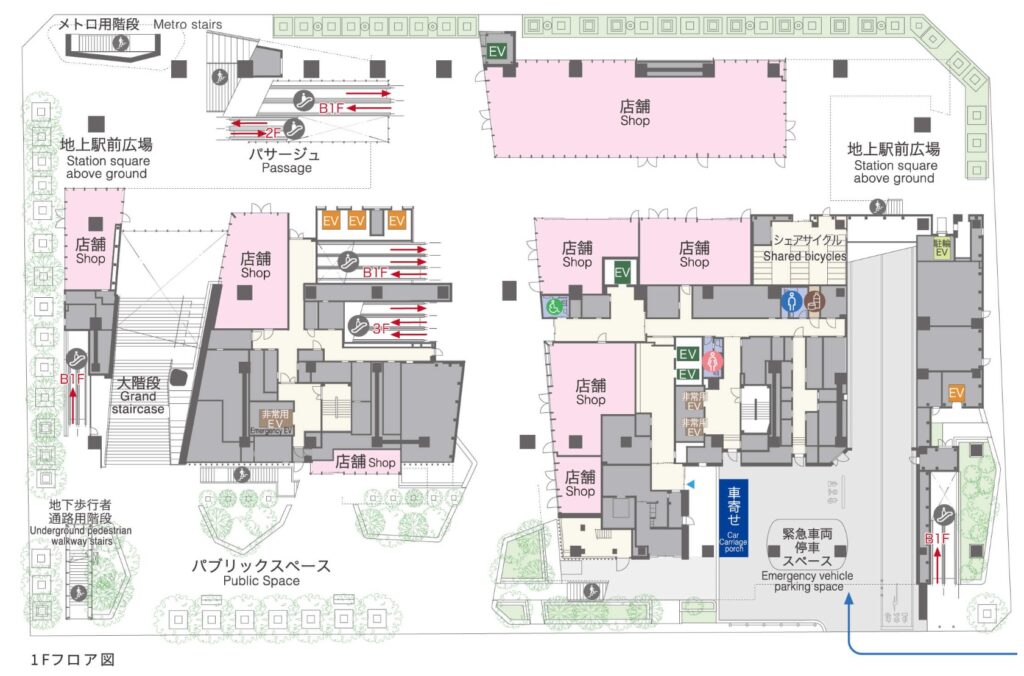 1階にはパサージュが設けられ、開放的な空間となります。