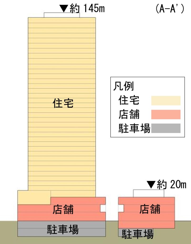 マンションを主体に、低層階には商業施設ができ、商業施設には複数階にわたって様々なジャンルの複数店舗が出店予定!