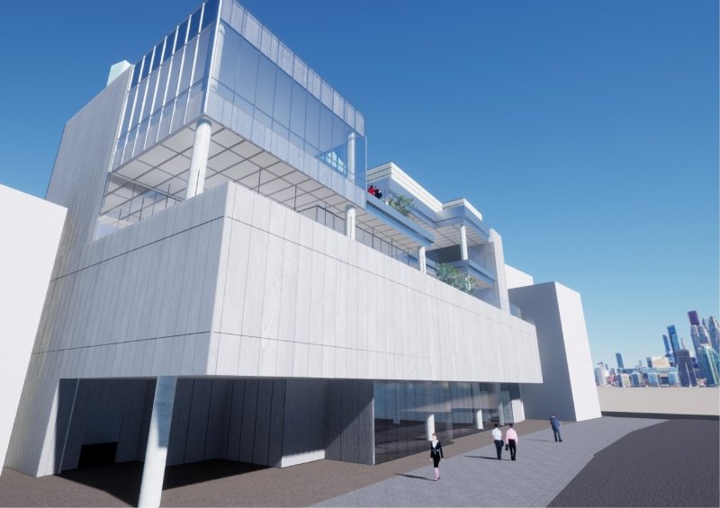 高層階はガラス張りとなっていて「テラス」も垣間見えます。