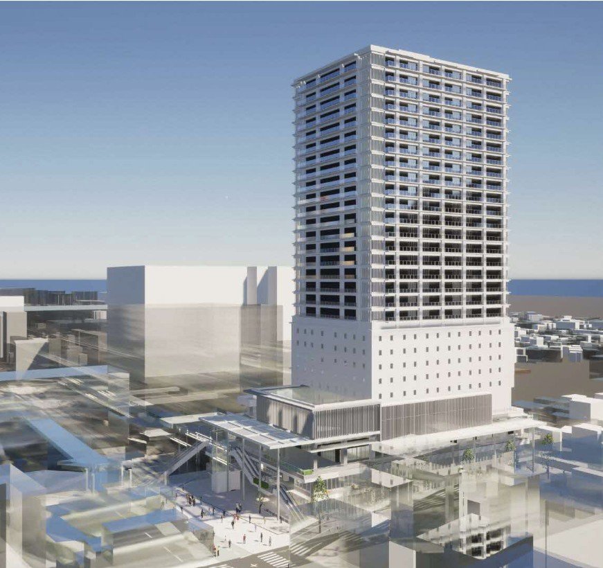 高層階は260戸の分譲マンション、160室のホテル、低層階は商業・業務施設、子育て支援施設を計画しています。