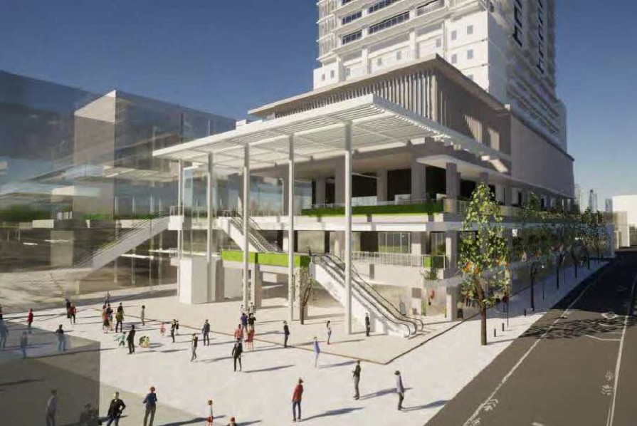 低層階にはエスカレーターが描かれており、北千住駅の改札階コンコースとペデストリアンデッキで接続予定となっています。