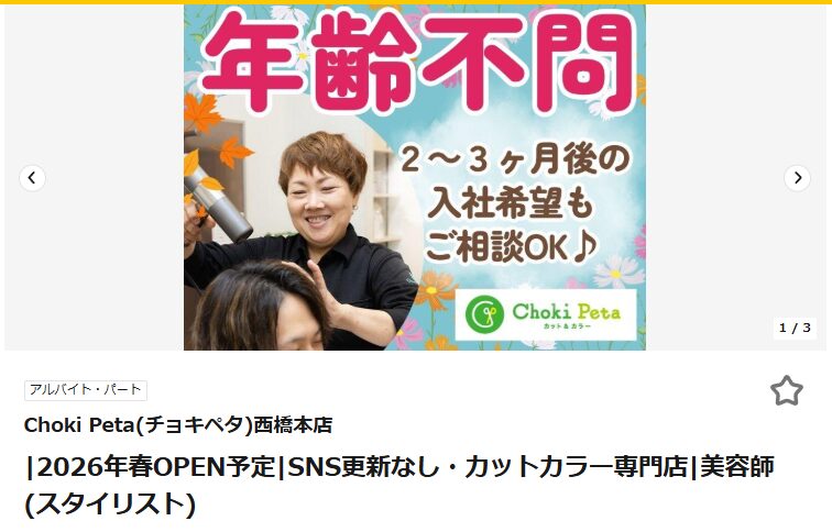 2025年12月26日現在、チョキペタの求人情報を確認しました!