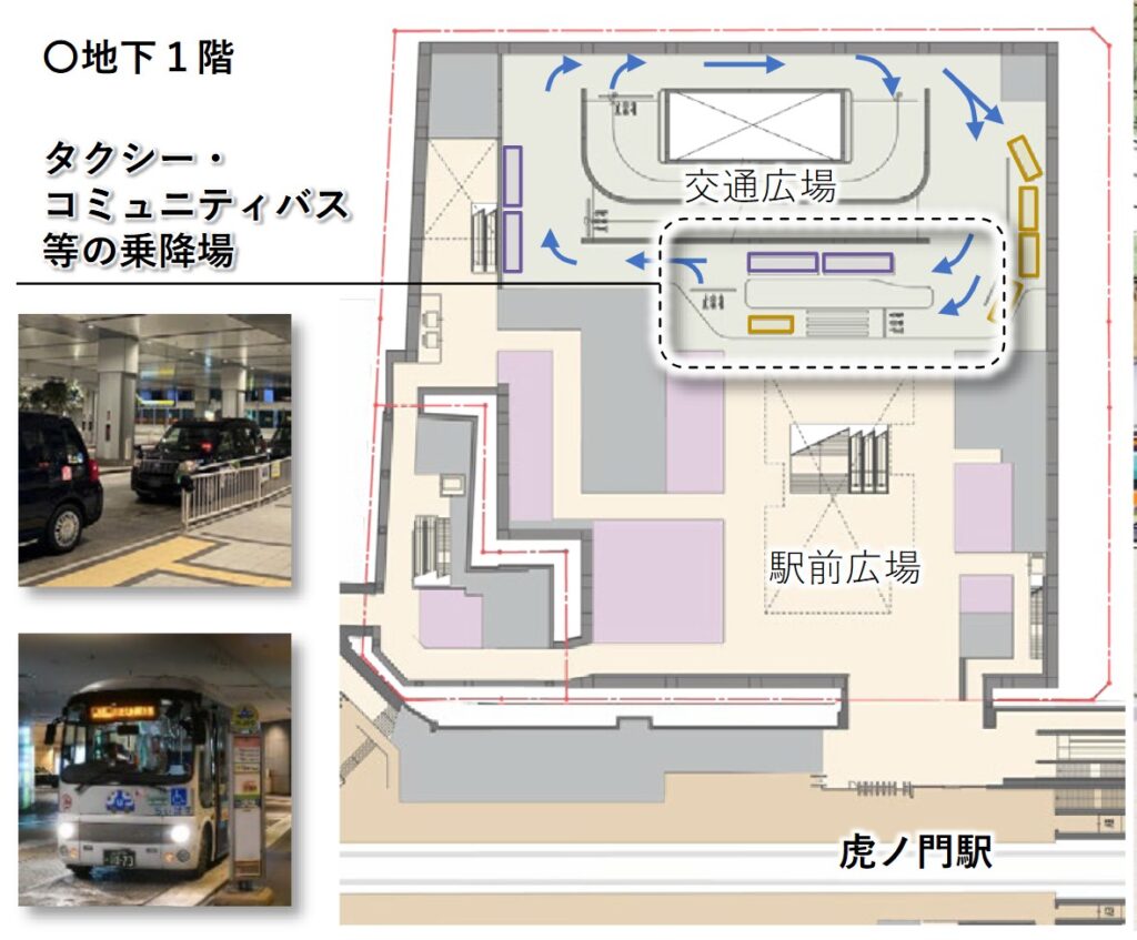 虎ノ門駅(地下1階)には駅前広場が設けられます。