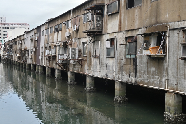 旦過市場最大の特徴は、川の上にせり出すように建てられた木造建築群です。昭和レトロな風情が観光名所として人気を集める一方、老朽化や水害リスク、防火面での課題を長年抱えていました。